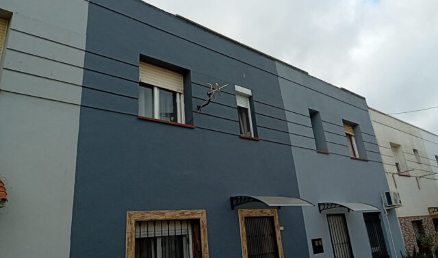 Los trabajos incluirán la reparación de elementos prefabricados y el reemplazo de las piedras artificiales que rematan los pretiles. La intervención se focaliza en un conjunto de viviendas unifamiliares de planta baja y un piso, con acceso directo desde la calle y un patio trasero.