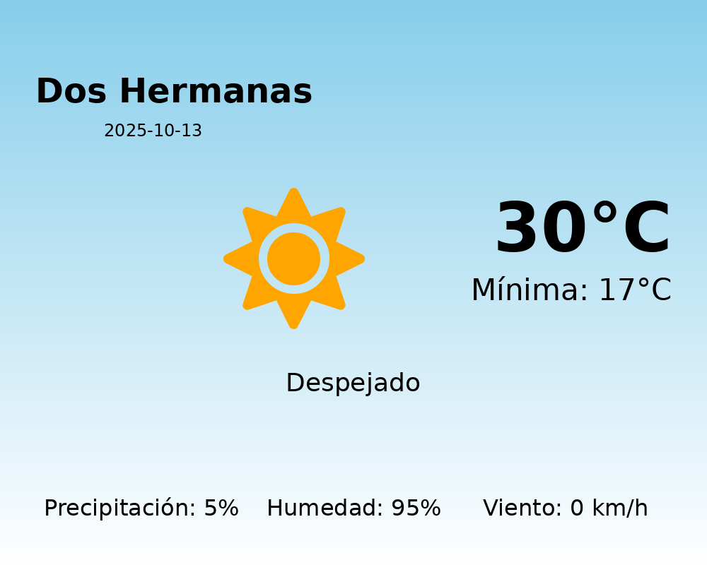 ¡Buenos días, Dos Hermanas! Hoy, 13 de octubre de 2025, nos espera una jornada con un clima variado y algunos matices a tener en cuenta. A continuación, te proporcionamos el pronóstico del tiempo detallado para que puedas planificar tu día adecuadamente.