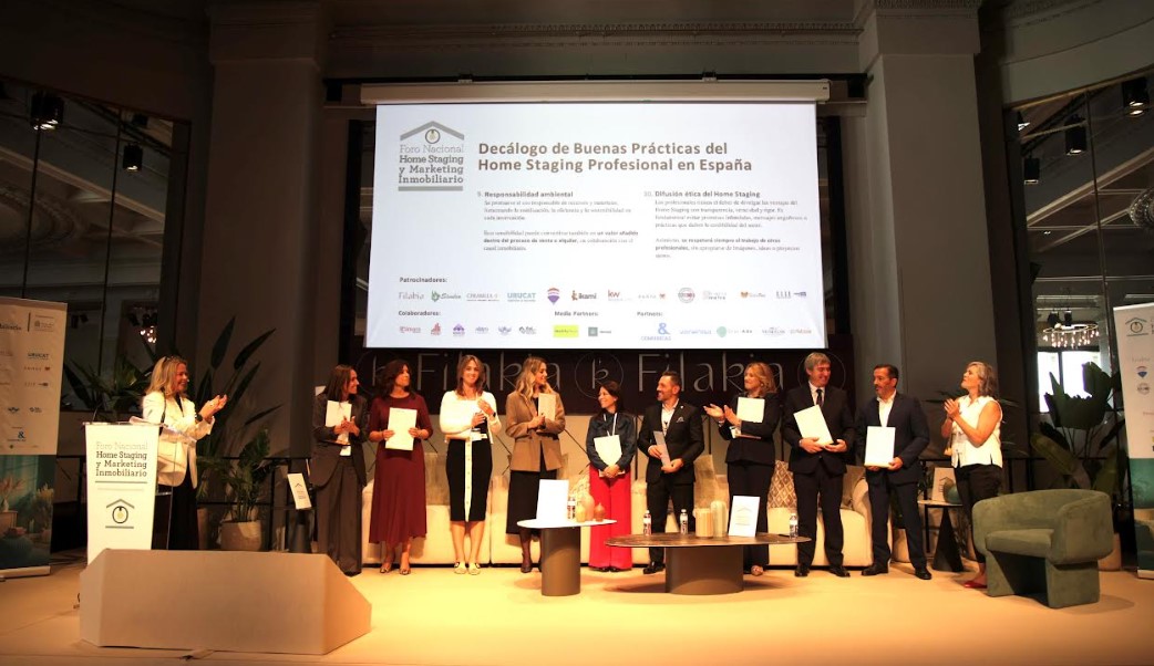 Uno de los momentos más esperados de la jornada fue la presentación de un hito inédito, desvelado exclusivamente en el Foro: se trata del primer “Decálogo de Buenas Prácticas del Home Staging Profesional en España” -cuya naturaleza no se había adelantado públicamente- que despertó gran expectación entre los profesionales del Home Staging y el sector inmobiliario presentes, que llenaron el auditorio.