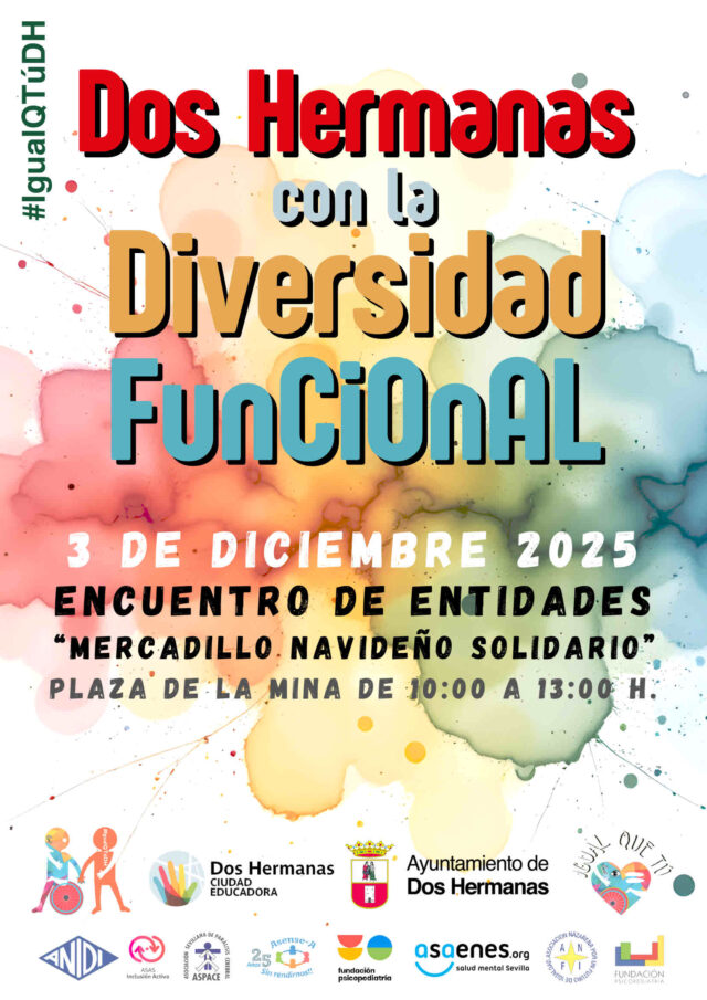 El Ayuntamiento de Dos Hermanas se une este año a la conmemoración del Día Internacional de las Personas con Diversidad Funcional, que se celebra cada 3 de diciembre. Esta iniciativa, realizada en colaboración con diversas asociaciones locales, busca concienciar a la sociedad sobre las dificultades y barreras que enfrentan las personas con diversidad funcional.