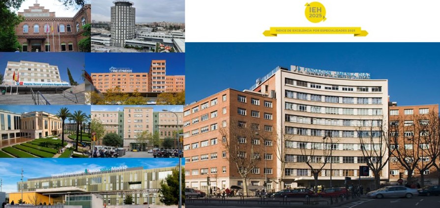 El Hospital Universitario Fundación Jiménez Díaz se posiciona como uno de los grandes protagonistas del IEH 2025, al liderar especialidades como Ginecología, Cirugía General, Neumología, Neurología, Oncología Médica y Urgencias. Le siguen hospitales históricos del sistema sanitario español como el Hospital Universitario La Paz, a la cabeza en Traumatología y Cirugía Ortopédica, así como en Reumatología; el Hospital Universitario Gregorio Marañón en Psiquiatría; o el Hospital Universitario Vall d’Hebron, que de nuevo lidera Aparato Digestivo.
