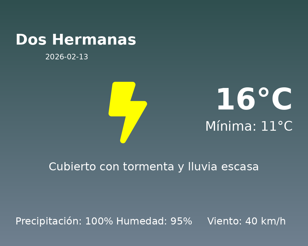 Hoy en Dos Hermanas, la jornada estará marcada por condiciones meteorológicas que requieren precaución. La temperatura máxima se espera que alcance los 16°C, mientras que la mínima será de 11°C, representando un día relativamente fresco.