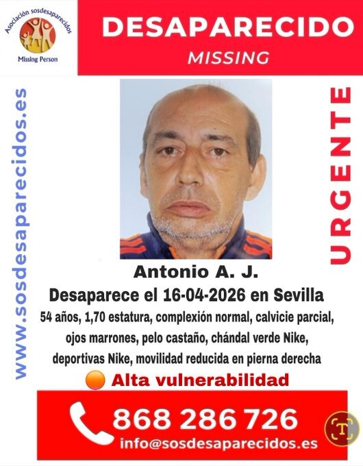 La preocupación duró menos de lo temido, pero fue suficiente para activar todos los protocolos. Antonio A. J., un hombre de 54 años desaparecido en Sevilla, ha sido finalmente localizado, lo que ha permitido desactivar la alerta que se había difundido con carácter urgente en las últimas horas.